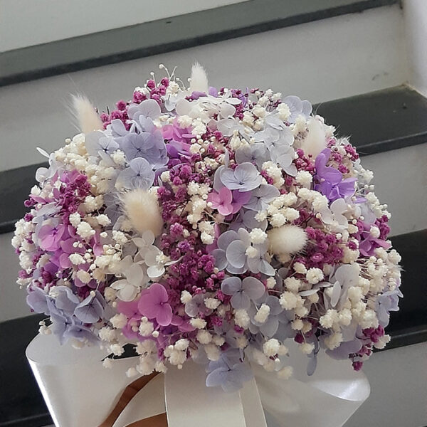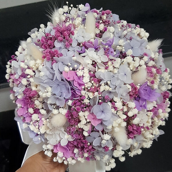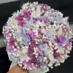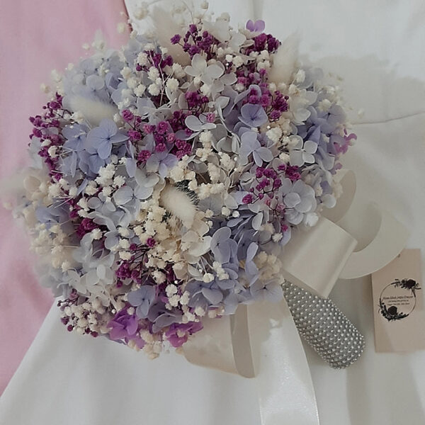 Bó hoa cưới cẩm tú câu tím nhạt mix cung baby trắng và tím cung cỏ đuôi thỏ vô cùng xinh xắn