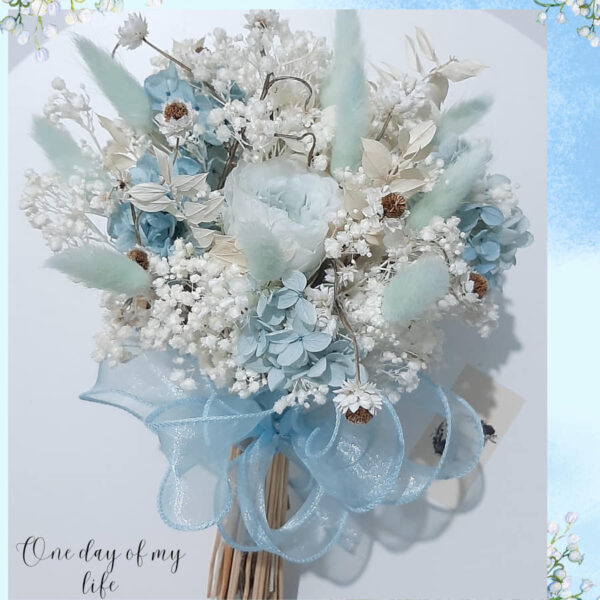 Tất cả là hoa khô không tàn hay còn gọi là hoa vĩnh cửu,bó hoa cưới từ hoa khô vĩnh cửu lưu giữ được rất lâu sau ngày cưới.